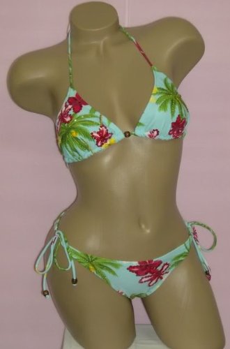 string tie bikini Blue Tropical String Tie 2 pc Bikini Sequins Swimsuit S Small
